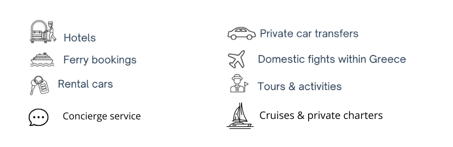 Enjoy 24/7 conceirge service when in Greece. From landing in Athens to the time you head home, we are available to you.